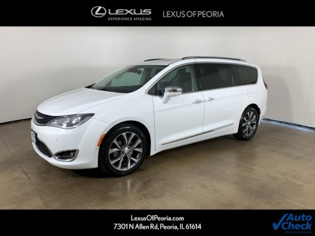 Bright White Clearcoat 2017 Chrysler Pacifica Limited with Black/Diesel Gray premium Nappa leather-trimmed interior - available now at Lexus of Peoria in Peoria, IL. This AutoCheck one-owner minivan blends family-focused practicality with upscale luxury and advanced safety features. Equipped with the Advanced SafetyTec Group, Uconnect Theater, and tri-pane panoramic sunroof, this Pacifica delivers comfort, entertainment, and confidence on every drive.