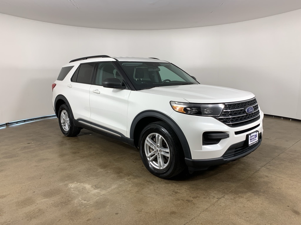 Star White Metallic Tri-Coat 2022 Ford Explorer XLT 4WD with Ebony Unique Cloth interior - available now at Ford of Peoria in Peoria, IL. One-owner, clean CARFAX. This three-row SUV delivers confident capability, family-friendly flexibility, and advanced driver-assistance features in a stylish and well-equipped package.