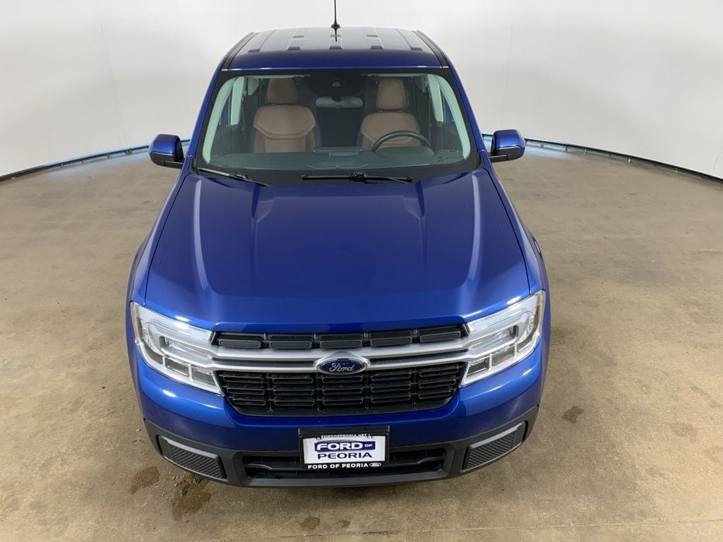 Atlas Blue Metallic 2023 Ford Maverick Lariat FWD with Desert Brown ActiveX interior available now at Ford of Peoria in Peoria, IL. This clean AutoCheck one-owner Maverick Lariat blends hybrid efficiency, premium Lariat comfort, and smart truck versatility, making it an ideal compact pickup for drivers across Central Illinois.