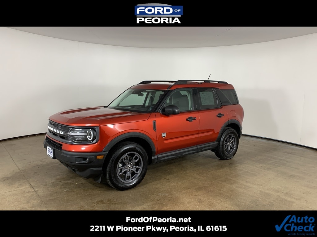 Hot Pepper Red Metallic 2024 Ford Bronco Sport Big Bend 4x4 with Gray cloth interior - available now at Ford of Peoria in Peoria, IL. This one-owner, clean AutoCheck SUV combines rugged off-road ability with everyday practicality, advanced technology, and all-season comfort, making it the perfect companion for both city commutes and outdoor adventures.