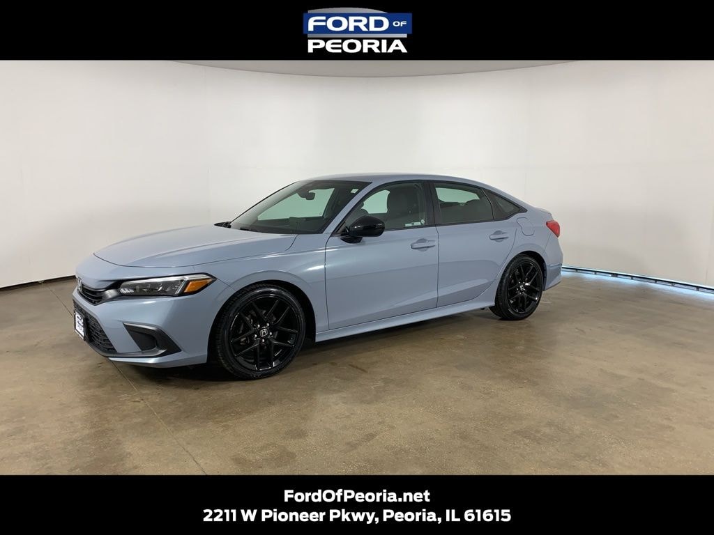 Black w/Cloth Seat Trim, 4-Wheel Disc Brakes, 8 Speakers, ABS brakes, Adaptive Cruise Control: Adaptive Cruise Control (ACC) with Low-Speed Follow, Air Conditioning, Alloy wheels, AM/FM radio, Apple CarPlay/Android Auto, Auto High-beam Headlights, Automatic temperature control, Brake assist, Bumpers: body-color, Cloth Seat Trim, Delay-off headlights, Driver door bin, Driver vanity mirror, Dual front impact airbags, Dual front side impact airbags, Electronic Stability Control, Emergency communication system: HondaLink, Exterior Parking Camera Rear, Forward collision: Collision Mitigation Braking System (CMBS) + FCW mitigation, Four wheel independent suspension, Front anti-roll bar, Front Bucket Seats, Front Center Armrest, Front reading lights, Fully automatic headlights, Illuminated entry, Knee airbag, Leather Shift Knob, Leather steering wheel, Low tire pressure warning, Occupant sensing airbag, Outside temperature display, Overhead airbag, Panic alarm, Passenger door bin, Passenger vanity mirror, Power door mirrors, Power steering, Power windows, Radio data system, Radio: 180-Watt AM/FM Audio System, Rear anti-roll bar, Rear side impact airbag, Rear window defroster, Remote keyless entry, Security system, Speed control, Speed-sensing steering, Steering wheel mounted audio controls, Tachometer, Telescoping steering wheel, Tilt steering wheel, Traction control, Trip computer, Wheels: 18" Gloss Black Alloy. Recent Arrival! 2022 Honda Civic Sport Sonic Gray Pearl