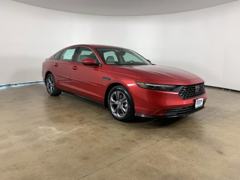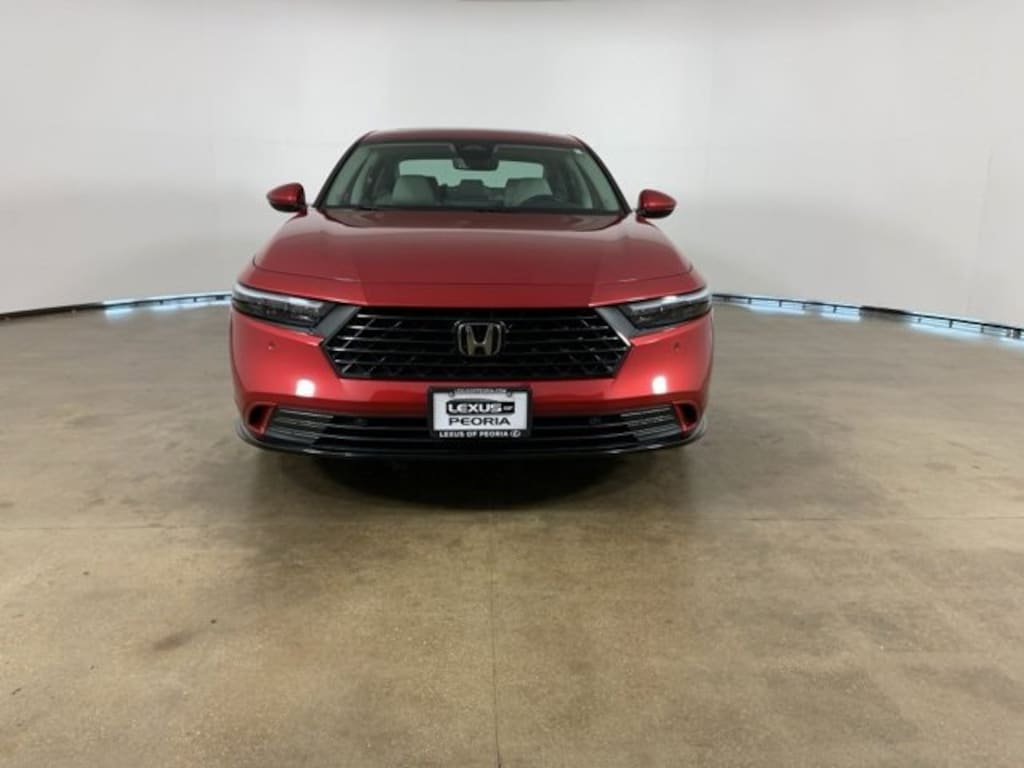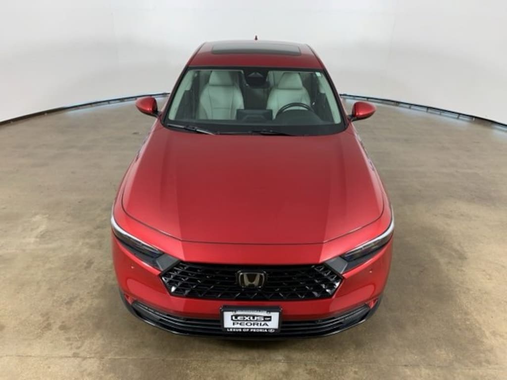 Radiant Red Metallic 2024 Honda Accord Hybrid EX-L with Gray leather-trimmed interior - available now at Lexus of Peoria in Peoria, IL. This AutoCheck one-owner sedan combines premium comfort, outstanding fuel efficiency, and modern technology in a sleek, stylish package. If you're searching for a midsize hybrid sedan that delivers both sophistication and long-term value, this used Honda Accord Hybrid for sale in Peoria is an excellent choice.