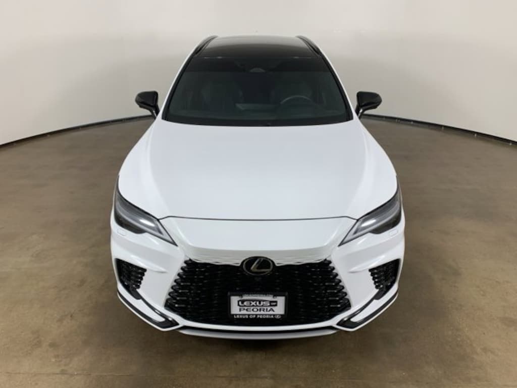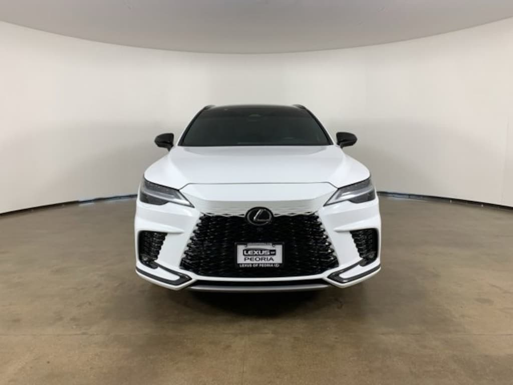 Ultra White 2023 Lexus RX 500h F SPORT Performance AWD with Black leather interior - available now at Lexus of Peoria in Peoria, IL. This clean AutoCheck one-owner L/Certified RX 500h F SPORT Performance blends exhilarating hybrid power, performance-tuned handling, and signature Lexus refinement. Outfitted with Premium Triple-Beam LED Headlamps, Panorama Glass Roof, Mark Levinson Audio, Advanced Park, Panoramic View Monitor, Heated & Ventilated Front and Rear Seats, and more, this flagship hybrid SUV delivers luxury, technology, and dynamic capability.