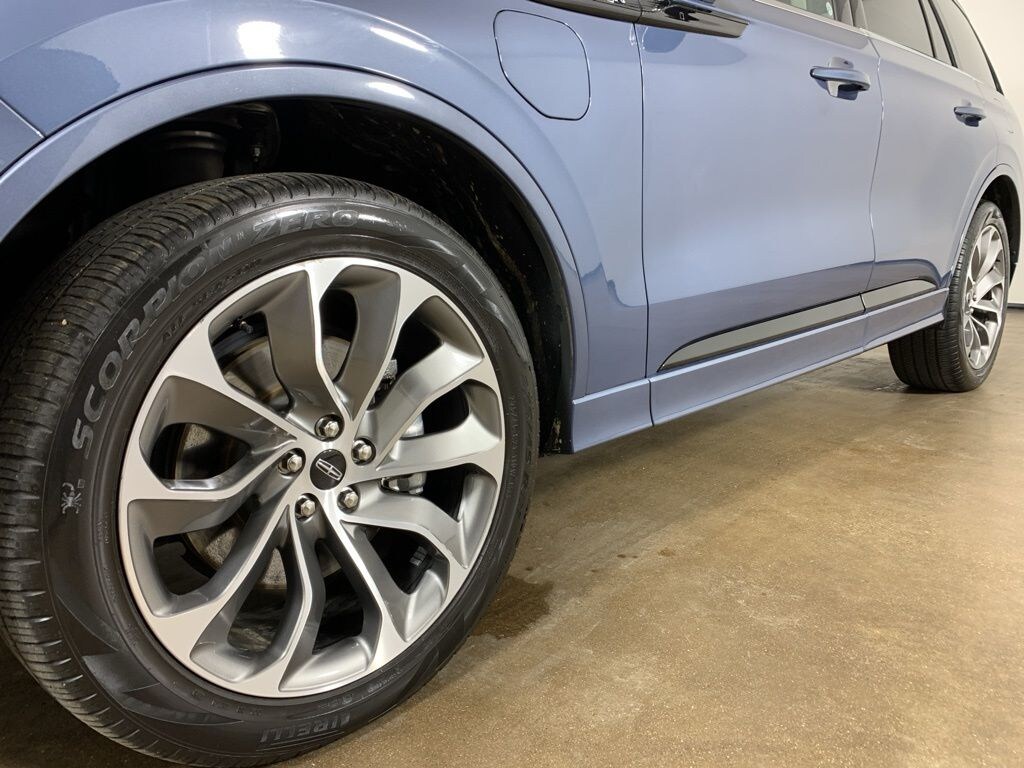 3.0L V6, 14 Speakers, 3.31 Axle Ratio, 30-Way Perfect Position Seats w/Active Motion, 3rd row seats: split-bench, 4-Pin & 7-Pin Connectors, 4-Wheel Disc Brakes, ABS brakes, Active Park Assist Plus, Adaptive Cruise Control w/Traffic Jam Assist, Adaptive Pixel LED Headlamps, Adaptive suspension, Adaptive Suspension w/Road Preview, Air Conditioning, Air Glide Suspension w/Dynamic Lower Entry, Alloy wheels, AM/FM radio: SiriusXM, Audio memory, Auto Air Refresh, Auto Heated/Ventilated Driver & Passenger Seats, Auto High-beam Headlights, Auto-dimming door mirrors, Auto-dimming Rear-View mirror, Automatic temperature control, Blind Spot Detection w/Cross Traffic Alert, Brake assist, Bumpers: body-color, Class IV Hitch & Wiring, Class IV Trailer Tow Package, Compass, Convenience Package, Delay-off headlights, Driver door bin, Driver vanity mirror, Dual front impact airbags, Dual front side impact airbags, Dynamic Handling Package, Electronic Stability Control, Elements Package Plus, Emergency communication system, Equipment Group 302A, Evasive Steering Assist, Four wheel independent suspension, Front anti-roll bar, Front Bucket Seats, Front Center Armrest, Front dual zone A/C, Front fog lights, Front License Plate Bracket, Front reading lights, Full Rear Console, Fully automatic headlights, Garage door transmitter, Head-Up Display, Heated door mirrors, Heated front seats, Heated Steering Wheel, Heated VisioBlade Wipers, Heated/Ventilated 2nd Row Outboard Seats, HVAC memory, Illuminated entry, Illumination Package, Knee airbag, Lincoln Co-Pilot360 Plus, Lincoln Lit Star in Grille, Low tire pressure warning, Luxury Package, Memory seat, Navigation System, Occupant sensing airbag, Outside temperature display, Overhead airbag, Overhead console, Panic alarm, Passenger door bin, Passenger vanity mirror, Phone As A Key, Power door mirrors, Power driver seat, Power Liftgate, Power moonroof: Panoramic Vista Roof, Power passenger seat, Power steering, Power windows, Premium Lthr Heated/Ventilated Fnt Captain's Chairs, Radio data system, Radio: Revel AM/FM Audio System w/14 Speakers, Radio: Revel Ultima 3D Audio System w/28 Speakers, Rain sensing wipers, Rear air conditioning, Rear anti-roll bar, Rear audio controls, Rear Door Sunshades, Rear dual zone A/C, Rear reading lights, Rear window defroster, Rear window wiper, Remote keyless entry, Reverse Brake Assist, Security system, SiriusXM, Smart Trailer Tow, Speed control, Speed-Sensitive Wipers, Split folding rear seat, Spoiler, Steering wheel memory, Steering wheel mounted A/C controls, Steering wheel mounted audio controls, SYNC 3 Communication & Entertainment System, Tachometer, Telescoping steering wheel, Tilt steering wheel, Traction control, Trailer Sway Control, Trip computer, Turn signal indicator mirrors, Variably intermittent wipers, Wheels: 21" Bright-Machined Aluminum, Wireless Charging Pad. Recent Arrival! 2021 Lincoln Aviator Grand Touring Ocean Drive Blue