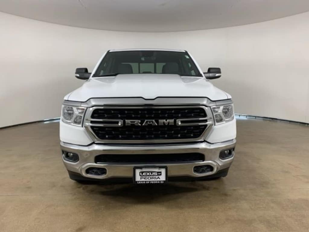 Bright White Clear-Coat 2022 Ram 1500 Big Horn Crew Cab 4x4 with Black interior - available now at Lexus of Peoria in Peoria, IL. This clean AutoCheck one-owner Ram 1500 Big Horn delivers legendary HEMI V8 power, advanced technology, and full-size truck capability. With its Crew Cab interior space, strong towing capability, and premium Big Horn features, this Ram is built for both hardworking truck duties and everyday comfort across Central Illinois.