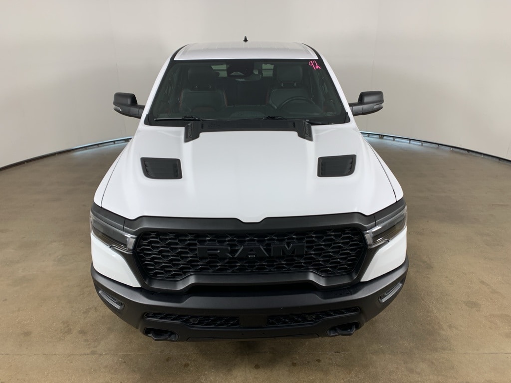 Bright White Clear-Coat 2025 Ram 1500 Rebel Crew Cab 4x4 with Black/Red cloth/vinyl bucket interior - available now at Ford of Peoria in Peoria, IL. This clean AutoCheck one-owner Ram 1500 Rebel blends aggressive off-road capability with premium comfort, advanced driver-assistance features, and the power of the new 3.0L Hurricane Twin-Turbo I6 engine. Equipped with performance-tuned suspension, skid plates, electronic locking rear axle, Rebel Level 1 Equipment Group, heated seats and steering wheel, Uconnect 5 NAV with 12-inch touchscreen, and 18-inch mid-gloss black wheels, this Rebel delivers the perfect balance of strength, tech, and refinement.