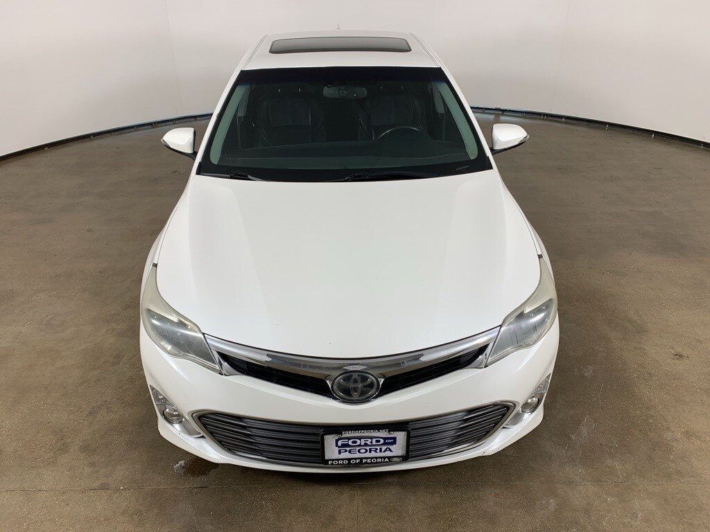 6-Speed Automatic ECT-i, 11 Speakers, 4-Wheel Disc Brakes, ABS brakes, Air Conditioning, Alloy wheels, AM/FM radio: SiriusXM, Auto-dimming door mirrors, Auto-dimming Rear-View mirror, Automatic temperature control, Brake assist, Bumpers: body-color, CD player, Compass, Delay-off headlights, Driver door bin, Driver vanity mirror, Dual front impact airbags, Dual front side impact airbags, Electronic Stability Control, Emergency communication system: Safety Connect, Entune, Exterior Parking Camera Rear, Four wheel independent suspension, Front anti-roll bar, Front Bucket Seats, Front Center Armrest, Front dual zone A/C, Front fog lights, Front reading lights, Fully automatic headlights, Garage door transmitter, Heated door mirrors, Heated front seats, Heated rear seats, High-Intensity Discharge Headlights, Illuminated entry, Knee airbag, Leather steering wheel, Low tire pressure warning, Memory seat, Multi- Stage Heated & Ventilated Front Bucket Seats, Navigation System, Occupant sensing airbag, Outside temperature display, Overhead airbag, Overhead console, Panic alarm, Passenger door bin, Passenger vanity mirror, Power door mirrors, Power driver seat, Power moonroof, Power passenger seat, Power steering, Power windows, Premium Perforated Leather Seat Trim, Radio data system, Radio: Premium HDD Navigation w/Entune & JBL, Rain sensing wipers, Rear air conditioning, Rear anti-roll bar, Rear reading lights, Rear seat center armrest, Rear side impact airbag, Rear Window Blind, Rear window defroster, Remote keyless entry, Security system, Speed control, Speed-sensing steering, Speed-Sensitive Wipers, Steering wheel mounted audio controls, Tachometer, Telescoping steering wheel, Tilt steering wheel, Traction control, Trip computer, Turn signal indicator mirrors, Variably intermittent wipers, Ventilated front seats, Wheels: 18" x 7.5" 10 Spoke Silver-Painted Alloy. Recent Arrival! 2014 Toyota Avalon Limited White