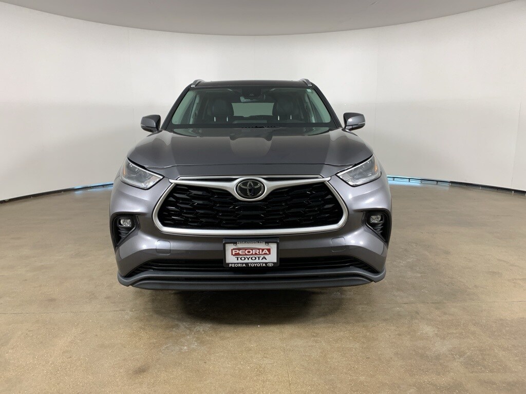 Magnetic Gray Metallic 2021 Toyota Highlander XLE V6 AWD with Black SofTex-trimmed interior available now at Peoria Toyota in Peoria, IL. This AutoCheck one-owner Highlander XLE blends strong V6 performance, confident all-wheel-drive capability, and family-friendly comfort in a versatile three-row SUV designed for daily driving and long road trips. Well equipped with modern connectivity, advanced safety features, and flexible seating, this Highlander delivers the reliability and practicality Toyota is known for.