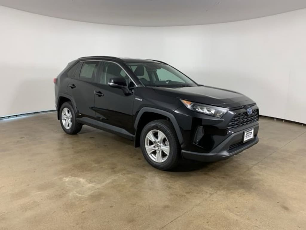 Midnight Black Metallic 2021 Toyota RAV4 Hybrid LE AWD with Black fabric-trimmed interior - available now at Lexus of Peoria in Peoria, IL. This AutoCheck one-owner RAV4 with clean-history delivers confident all-weather traction, impressive fuel economy, and a well-rounded suite of safety and tech features.
