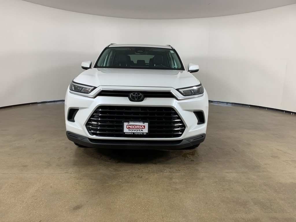 Wind Chill Pearl 2024 Toyota Grand Highlander XLE AWD with Black SofTex interior available now at Peoria Toyota in Peoria, IL. This clean AutoCheck one-owner Grand Highlander XLE blends turbocharged performance with three-row versatility, advanced safety technology, and Toyotas long-standing reliability. Equipped with seating for seven, Toyota Safety Sense 3.0, a 12.3-inch Toyota Audio Multimedia system, heated power front seats, a power liftgate, and All-Wheel Drive with Multi-Terrain Select, this Grand Highlander delivers exceptional comfort, capability, and long-term dependability.